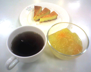 料理教室。 5月25日に作ったチーズケーキです。以外に簡単でびっくりしました。おいしかったです。また作りたいなぁ。あと柑橘類のジュレを作りました。炭酸で作ってるからまたおいしいんだぁ~。新発見って感じだった。おしかった。次回はマーブルケーキ。楽しみ!